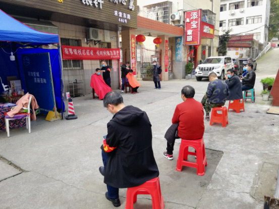 义剪原定于下午三点开始,区文化馆和社区的志愿者们早早的赶到现场开展准备工作,为等候理发的居民及防控一线的工作人员准备凳子和矿泉水。活动中,理发师们认真聆听每一位“顾客”的要求,并积极予以满足,娴熟的技术和热情周到的服务赢得了大家的一致夸赞。志愿者们则在现场维护秩序、清理现场垃圾。