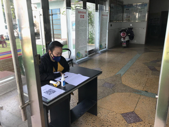 市图书馆复工复产复市后值班人员在门口值守。