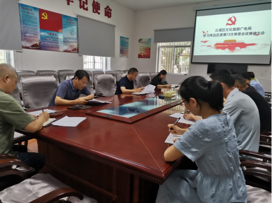 7月31日下午,区文旅广电局召开专题会议,学习传达五届区委第73次常委会议精神。党组书记、局长郑坚主持会议,班子成员、全体机关干部及二级机构负责人参加。