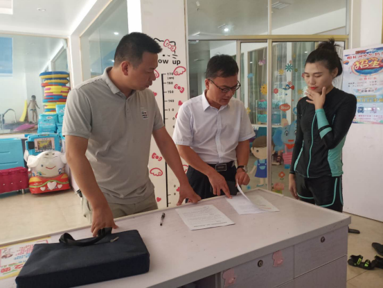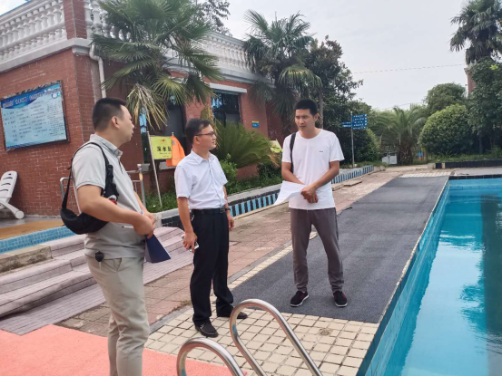 随着夏日气温升高,学生暑期放假,到游泳池游泳消暑的人越来越多。为加强对我区游泳场所的安全监管,确保各游泳场所安全有序开放,8月12日,君山区文化旅游广电体育局文化市场综合执法大队和体育股对我区各游泳场所进行了安全专项检查。