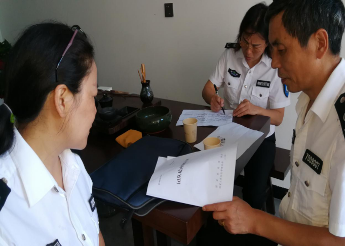 执法人员在专项整治行动向经营企业负责人出示执法证