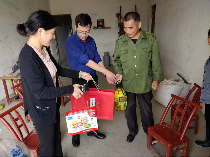 “双节”到来之际,陆如勇率员慰问贫困户。