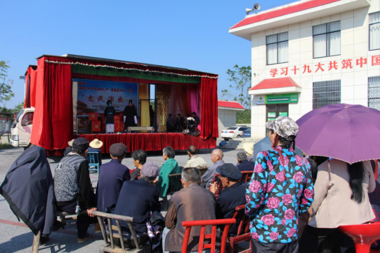 10月9日下午2点,持续多日的阴雨天放晴了,云溪区路口镇白荆村村民脸上挂着笑容,手上提着木凳,纷纷赶往村民文化活动中心,原来花鼓戏《乾隆皇帝访南京》正在这里精彩上演。