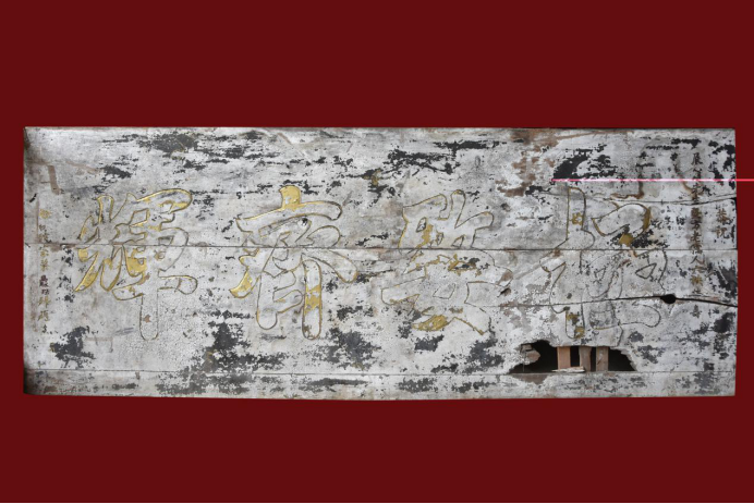 (通讯员 曹海燕)10月20日,临湘市博物馆工作人员一行在市五里街道办事处松峰村老屋组原老村支书万观赐家征得民间民俗、流散文物9件(套)。其中尤显珍贵的是一块万氏家族祖传“寿匾”,此匾为木质,长2.4米。宽1.2米,黑色油漆为底,匾额正中阳雕鎏金,“极婺齐辉” 四个大字。根据匾额题头、落款内容,查找万氏族谱记载,已确立此匾为万氏第99世——万展献夫妇祝寿金匾。