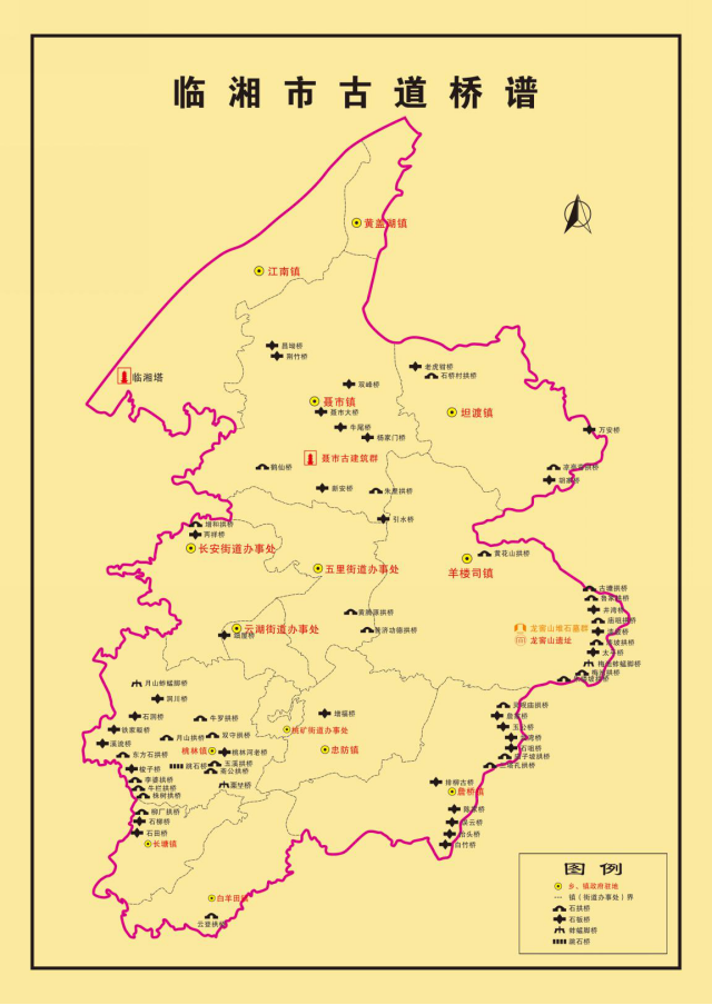 其中石拱桥25座,青石板桥36座,蚱蜢脚桥3座,跳石桥1座。(临湘古道桥谱示意图)