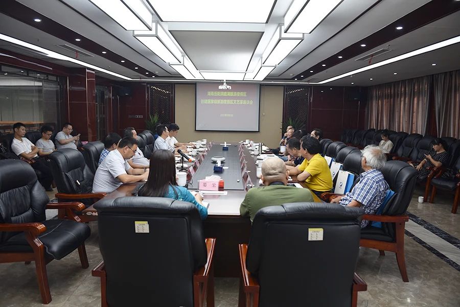 结束了参观之旅,一行人来到茶博城开展座谈会。会上,区旅发委主任刘军就南湖创建国家级旅游度假区工作情况进行了汇报。在观看了岳阳洞庭湖旅游度假区宣传片后,文艺“大咖”们对我区生态优先、文旅融合发展的思路和理念表示赞赏。同时,大家立足南湖秀美山水、丰厚文化底蕴,结合目前发展实际,围绕“南湖新区创建国家级旅游度假区”主题,积极建言献策、把脉开方。