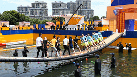 《摇啊笑啊桥》第三季来到岳阳南湖,汇聚了青春力量,因为这里有全新搭建的摇桥场地,舞美鲜亮的颜色跟盛夏假期的火热堪称绝配;这里有不断升级的比赛设施,让持续升温的参赛热情一触即发。