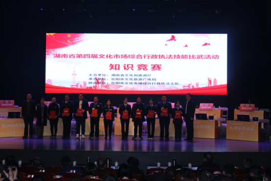 12月17日上午,2020年湖南省第四届文化市场综合行政执法技能比武活动在岳阳文化艺术会展中心落下帷幕。经过激烈角逐,岳阳市代表队从全省14个地市州代表队中脱颖而出,获得团体二等奖。岳阳市代表队队员、云溪区文旅广电局乔丹荣获政策法规知识竞赛个人优胜奖。