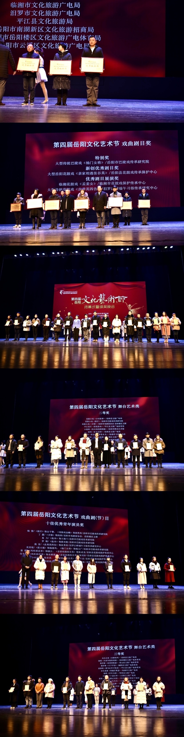 2020年12月29日晚,岳阳市第四届文化艺术节颁奖晚会在市会展中心举办,岳阳县共揽四金两银一铜和一个优秀新剧目奖,特别是晚会现场展演的女生小组唱《雨醉山乡》、舞蹈《打秋》、花鼓小戏《风吹稻花香》以独有的地方特色、动人的唱腔、绝佳舞美设计收获最多好评,燃爆剧场。