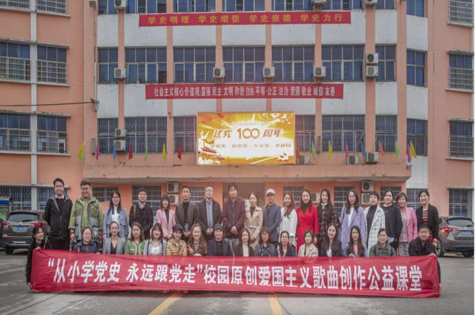 图为老羽词话采风团到临湘一完小开展爱国主义歌曲创作