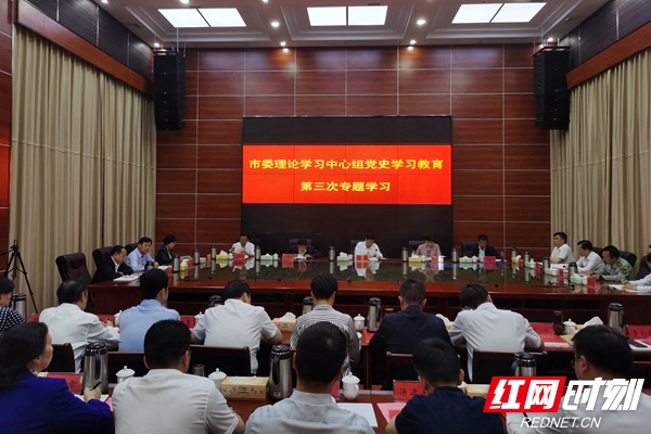 岳阳市委理论学习中心组党史学习教育第三次专题学习现场。