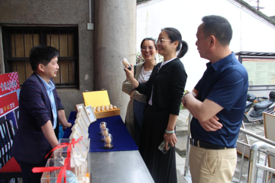 在陆城古镇综合文化站广场,十分热闹。云溪区文化旅游广电局在此举办了“5.19”中国旅游日宣传活动。活动现场,文明旅游倡议、非物质文化遗产、嗡琴戏、根雕等文旅融合宣传展板吸引众多老百姓驻足观看。蛋雕工艺、餐厨垃圾处理技艺等体验活动更是受到了老百姓欢迎。“蛋雕工艺真是太神奇了,我买了一个小猴子蛋雕送给我儿子,小猴子蛋雕是十二生肖文化的代表,我觉得很有意义。”村民芳芳说。