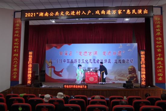 围绕“中国旅游日”,云溪区文化旅游广电局精心推出了系列惠民演出活动,两场精彩的传统花鼓戏《清风亭赶子》《海桃冤》,分别于下午和晚上,在陆城古镇综合文化站礼堂精彩上演,演员们精湛的表演技艺,让大家感受到了传统文化的魅力,赢得现场观众的阵阵掌声。