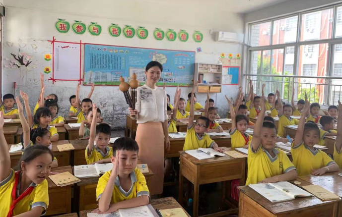 9月14日下午,为贯彻落实中共中央办公厅、国务院办公厅《关于实施中华优秀传统文化传承发展工程的意见》文件精神,响应国务院及教育部对艺术教育和传统文化进校园的指示,让艺术进校园、进课堂,弘扬民族文化;结合我市《关于实施打造传统文化进校园品牌实施方案》。临湘市青少年活动中心组织校外文化服务志愿者一行,来到临湘市第六完全小学一年级学生课堂开展葫芦丝公益免费培训活动。葫芦丝公益免费培训活动在该校已开展了三年之久,受益学生达4000余人,该校近40名老师先后参加了葫芦丝乐器的培训及学习。