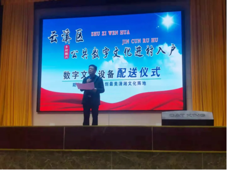 ▲区文化旅游广电局党组书记、局长郑坚现场向三个创建候选村移交公共文化智慧一体机