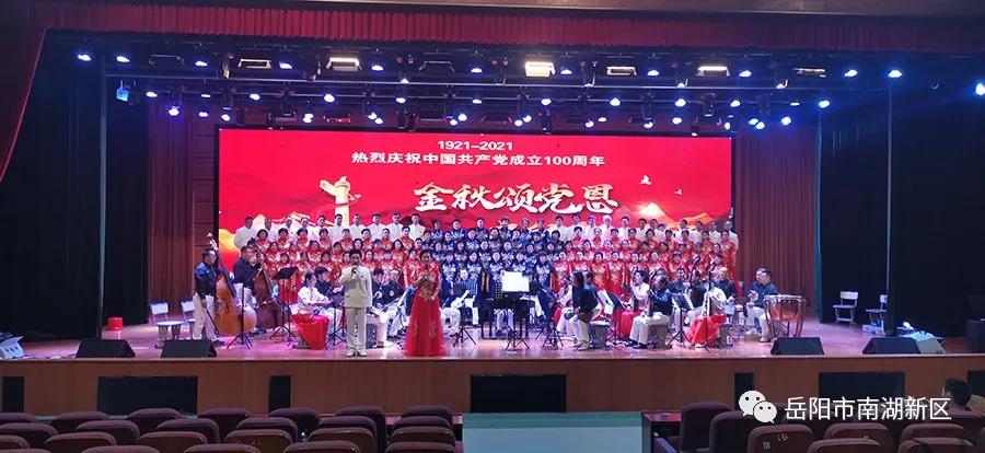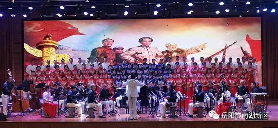 5月9日,室外骄阳似火,岳阳市东方红小学剧场内热情洋溢。南湖新区130名退休老干部组成的金秋京韵合唱团演奏的“百人毛主席诗词京歌联唱《长征》、《娄山关》”激情上演,振奋的旋律在剧场内飘荡,饱含深情的歌声唱出了对党的无限热爱。