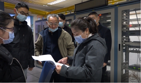 ▲区委副书记、宣传部长赵婷检查安全播出中心机房