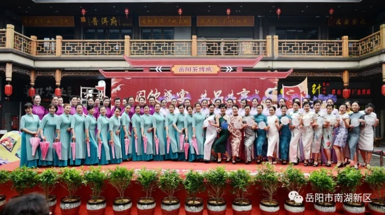 5月22日,一场别开生面的旗袍秀在岳阳茶博城上演。此次活动是“国饮盛宴 共品共享”——521国际茶日·岳阳黄茶推介系列活动之一,100多名旗袍爱好者身着典雅的中国传统服装旗袍,或执扇子、或撑纸伞优雅地行走在茶博城内,为大家带来了一场华美的视觉盛宴。