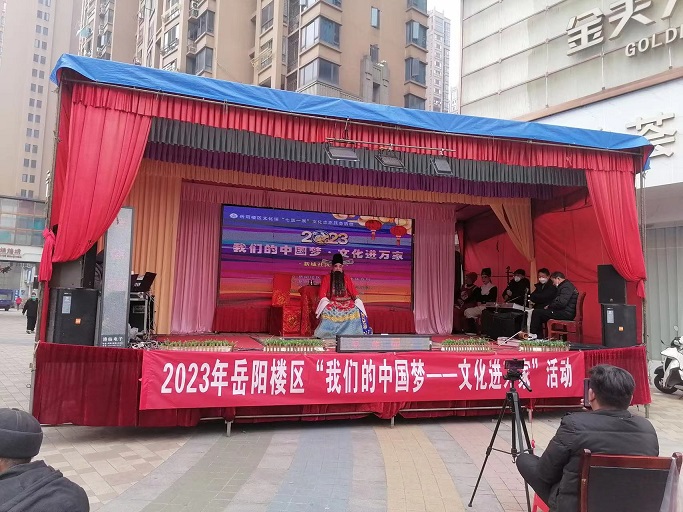 1月5日,2023年岳阳楼区文化馆“七送一展”文化志愿服务系列活动——送戏曲送春联在五里牌街道新城社区举行。