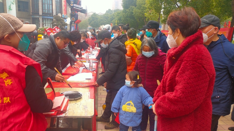 活动现场人气火爆。舞台上,戏曲演员专业、精彩的演出博得居民们阵阵喝彩。舞台对面,书法家们挥毫泼墨,为居民们书写春联,充满喜庆、吉祥、祝福的春联,为活动增添了浓浓的“年味”。