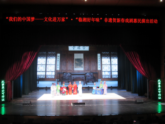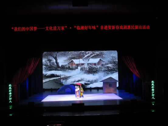 继“我们的中国梦——文化进万家”·“临湘好年味”非遗庆元旦、非遗迎新春活动后,花鼓戏保护传承中心又持续开展“我们的中国梦——文化进万家”·“临湘好年味”非遗贺新春惠民演出。经典剧目《五女拜寿》以青年演员为主演,俊美的扮相与稚嫩清亮的唱腔,赢得观众好评;《瓦车蓬》启用老演员,神形兼备,唱得荡气回肠,台下叫好声迭起。连台的好戏让非遗文化与观众进行了一场盛大的约会,为这个春节增添了浓浓年味,让观众感受到年味里的非遗风韵。