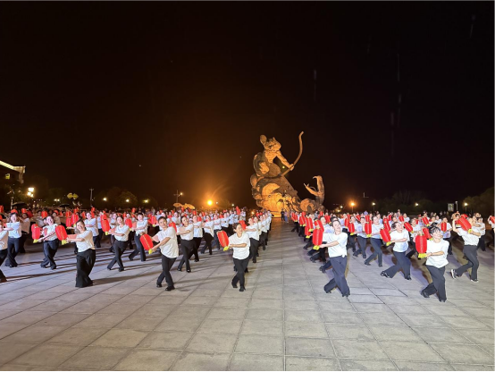 演出现场,老、中、青、少四代演员带来了《渔歌调》《洞庭号子》《渔歌小组唱》《渔姑出嫁》《特特歌》等经典“洞庭渔歌”节目,向来自各地的岳商及游客宣传我区非物质文化遗产,营造了良好的传统文化氛围。巴陵广场,岳阳楼区文化馆红马甲市民艺术大学舞蹈班的学员们和辖区各优秀广场舞队共跳原创广场舞《岳阳楼下我的家》,活力、优美的舞姿充分展示了岳阳楼区群众的热情。音乐会当晚烟花璀璨,歌声悠扬,吸引了众多市民游客观光打卡。据估计,现场观众达8万多人次。(岳阳楼区文化馆 许天柔)