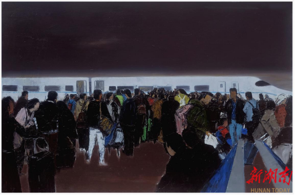 《夜·归》布面油画,120x180㎝,入选第十三届全国美术作品展