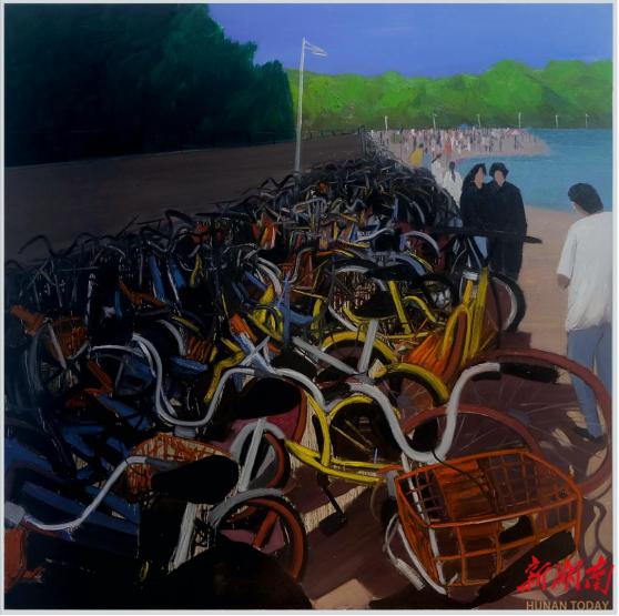 《假日风景》,145x145㎝,入选第二届深圳大芬国际油画双年展
