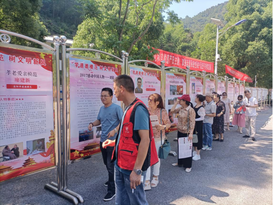 活动现场悬挂有2条宣传横幅,展示出28块大型展板,通过图文并茂的展览内容,主要介绍了临湘市近十年来在各行各业中21位道德模范的敬业奉献、诚实守信、见义勇为、孝老爱亲、助人为乐等感人事迹。此次展览产生了强烈的社会反响,游客曹女士参观完展览后表示:“你们的宣传展览很有现实意义,既体现了时代的精神,又传播了真善美,传递了社会正能量,是我们学习的榜样。”