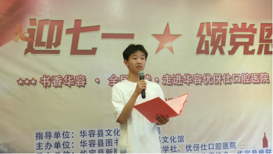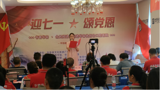 为推进全民阅读活动深入开展,构建全民阅读推广服务体系,发挥公共图书馆、文化馆文化阵地作用,以实际行动优化营商环境,助力企业文化建设。6月27日,县图书馆、文化馆联合在优伢仕口腔医院举行“ 迎七一、颂党恩”主题朗读活动。
