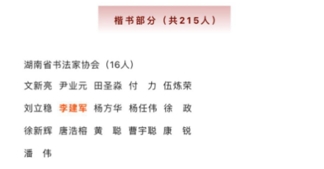 (李金雪)日前,临湘市文化馆传来喜讯,该馆书法专干李建军老师楷书作品陶渊明《读山海经·其一》经过严格的初评、复评,从全国17368件投稿作品中脱颖而出,入选全国第十三届书法篆刻展览。