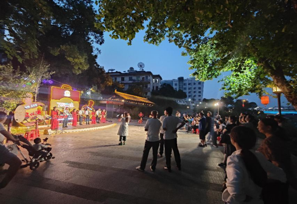 5月15日,汨罗市2024年文化馆服务宣传周之“汨罗江之夜·周三有约”公共文化服务活动走进友谊河公园。五月的花,初夏的风,友谊河边浪漫音符无处不在。
