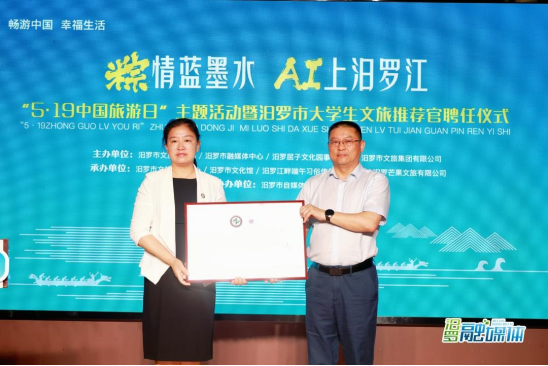 汨罗市文旅广电局相关负责人为大学生文旅推荐官颁发证书