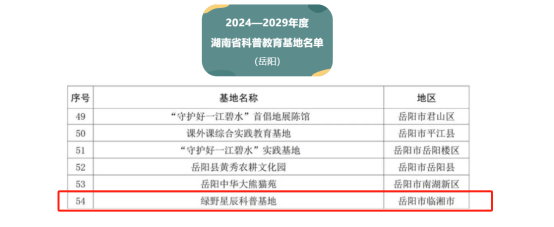 (信息员:余祥)近日,湖南省科学技术协会公布“2024—2029年度湖南省科普教育基地”名单,我市绿野星辰科普基地荣膺上榜,是岳阳6家入选单位之一。