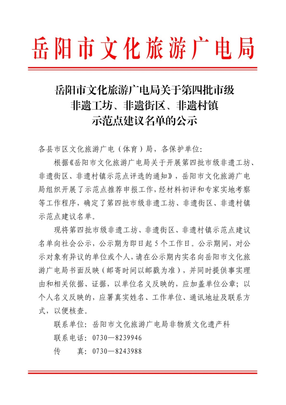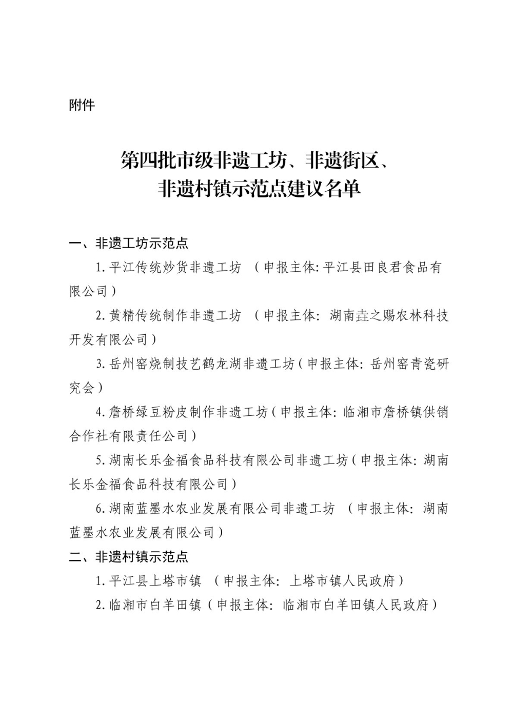 关于第四批市级非遗工坊、非遗街区、非遗村镇示范点建议名单的公示