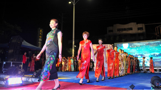 当晚的活动在大型旗袍走秀《茉莉花》中拉开帷幕,优美的旋律、曼妙的舞姿,穿着旗袍这一传统民族服装的辣妈们,轮流款款上台。现代舞《爵士》、旗袍秀《春光美》、旗袍舞《女人花》等节目精彩纷呈,展示了湘阴女性的端庄华丽和温柔典雅。表演唱《绣红旗》更是将整个活动推向高潮,前来观看的上千市民不时报以热烈的掌声。