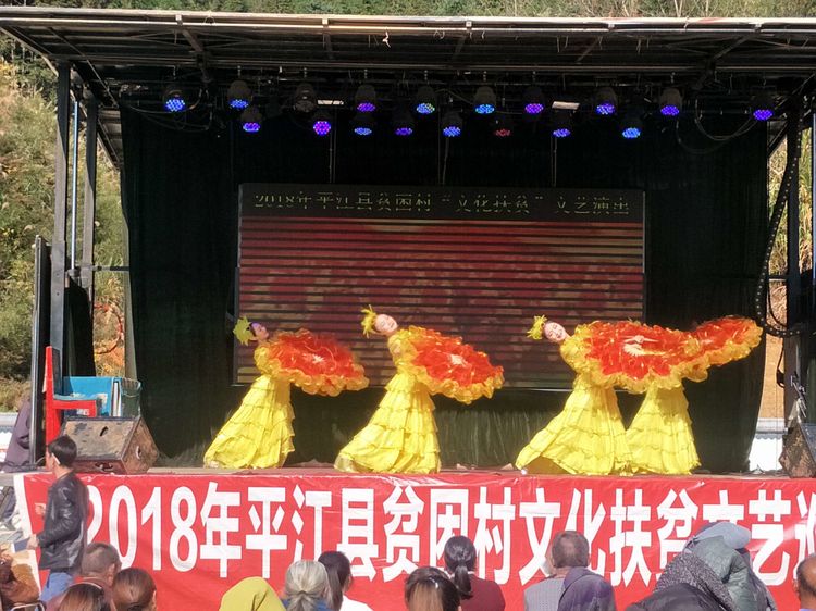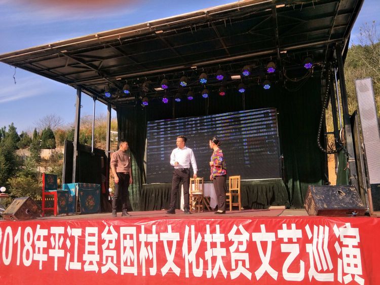 由平江县扶贫办、县文广新局合组成的文化扶贫、文化惠民巡演团为广大村民表演了舞蹈《我们的中国梦》,小品《懒汉脱贫》,花灯小戏《同在蓝天下》,渔鼓表演《文明花放新农村》等10余优秀的文艺节目。整场演出活动气氛热烈,掌声雷动。号召广大村民积极参与脱贫攻坚及新民风建设,用勤劳的双手脱贫致富、树立文明新风。