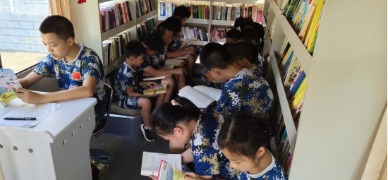 为了丰富少年儿童的暑期阅读生活,更便捷的为边远读者提供图书借阅服务。2019年8月7日上午,岳阳市图书馆流动服务车走进君山区412影子安全培训基地,开展送阅读进“暑期小营地”活动。流动服务车内配有数百本优质图书,30余名营地小读者有序走进流动服务车开展阅读,成为他们身心同成长的读书场所和交流空间。
