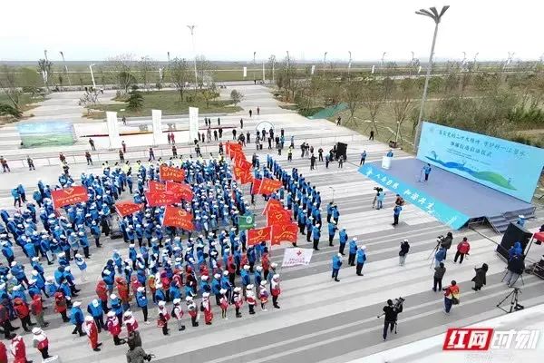 启动仪式后,文旅志愿者赴洞庭湖、长江沿线开展了徒步巡河净滩志愿活动。