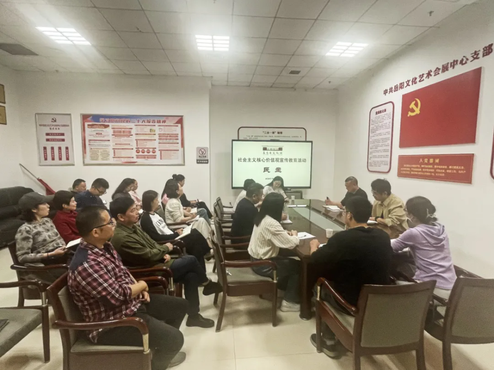 2024年10月16日岳阳市文化馆开展社会主义核心价值观教育活动,主题词为“民主”。
