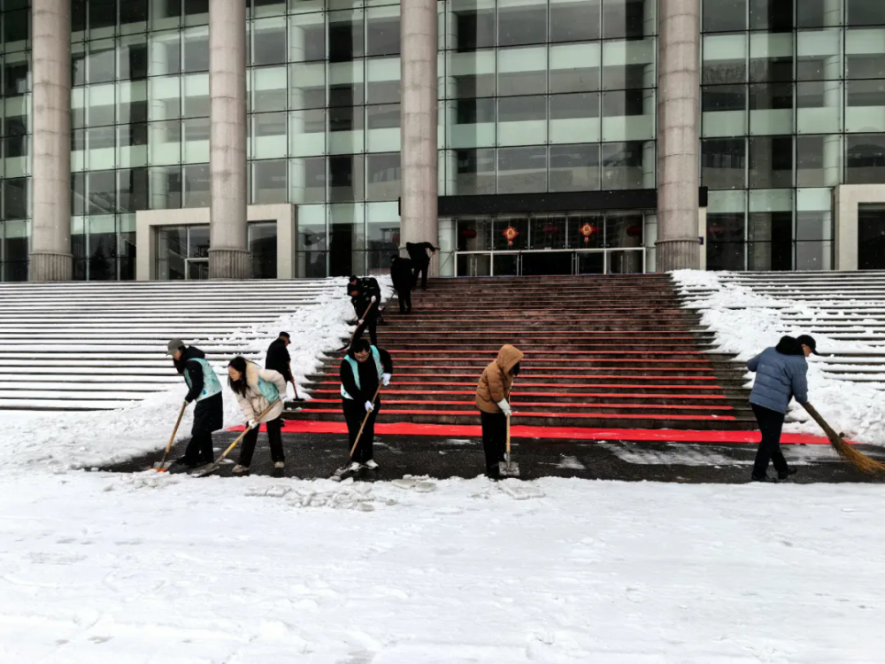 作为全市重要会议场所、文化活动中心,市文化馆党员干部不惧风雪、齐心协力,大家手持铁铲、扫帚等工具铲雪除冰,铲的铲、扫的扫,分工明确、配合默契、干劲十足,铲出一条“绿色通道”,全力保障全市政务会议、重大文化活动在会展中心顺利举行。