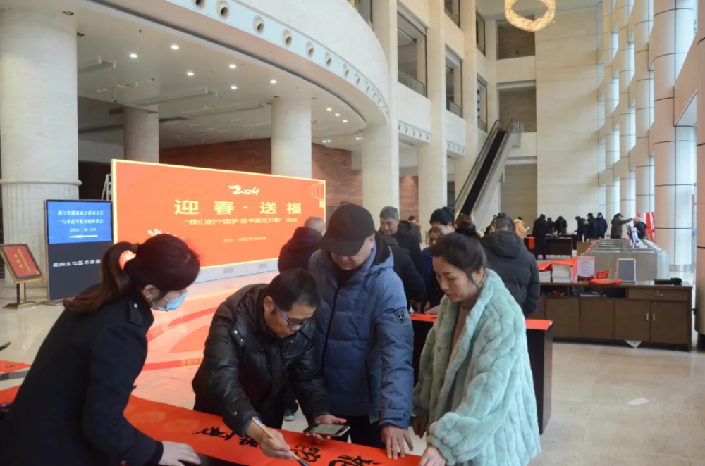 龙腾四海庆新年,金龙献瑞福满天。2024甲辰龙年新春到来之际,为弘扬中华民族优秀文化传统,营造浓厚的节日氛围,2月1日上午,市文化馆“迎春送福——我们的中国梦·送书画进万家活动”在岳阳文化艺术会展中心举行。我馆副馆长、知名书法家徐驰,馆党支部副书记、研究馆员袁雄斌与多位书法家一起挥毫写祝福,泼墨送吉祥。