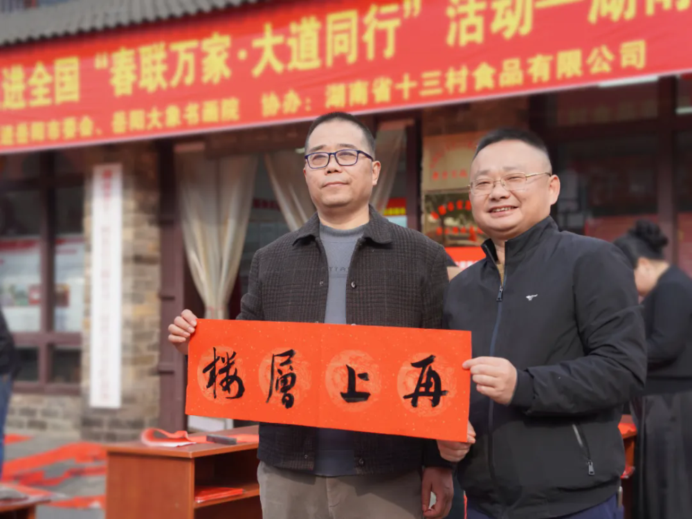 1月20日,岳阳市文化馆“春联万家,大道同行”送春联活动在十三村食品有限公司举行,旨在弘扬传统文化,传递新春祝福,为即将到来的春节增添浓厚的节日氛围。
