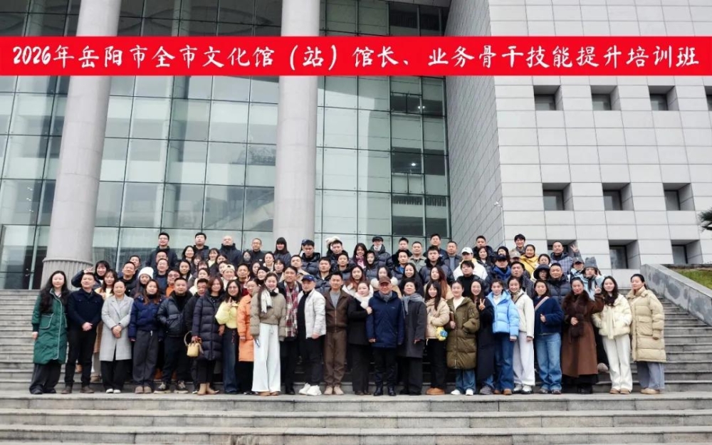1月28-29日,由市文旅广电局指导,市文化馆、市戏剧家协会主办,市群众文化学会、市巴陵戏传承研究院协办的“2026年全市文化馆(站)馆长及业务骨干技能提升培训班”成功举办。本次培训班以戏剧为主题,设计了现场观摩、专家讲座、业务沙龙等内容,上百位来自全市文化馆(站)和戏剧界的从业者、爱好者齐聚一堂,共赴这场兼具专业深度与传承温度的艺术盛宴。