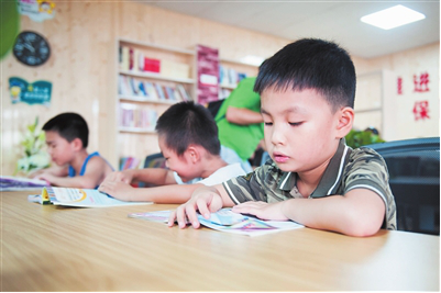 就读于湘江小学的钟安琦暑假过后就要进入二年级,为了让他暑假过得充实且丰富,而不是宅在家看电视玩手机,妈妈带他来到了书香社区。“也让他多沾沾书香气。”钟安琦的妈妈笑称。“这里有好多书可以看,还可以打球、了解航空知识,我以后还要来。”酣畅淋漓地结束一场球局后,接过社区工作人员递过来的免费茶水,钟安琦又重新坐回书桌前,继续看起了《海底两万里》。