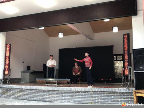 演出在该镇松木桥村舞蹈队热情的广场舞表演中拉开了序幕。随后,县花鼓戏草根剧团送上了剧团自编自导自演的现代湖南花鼓戏《寿母训子》,该戏结合了当前治婚丧陋习、刹人情歪风的主题,十分贴近群众生活。演出现场,尽管天气不佳,天空飘着小雨,但群众热情不减,不时爆发出热烈掌声和喝彩声:台上的演员全情投入地演出,台下的群众聚精会神地观看。