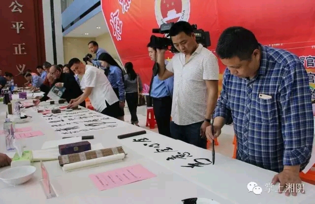 “清而不刻、严而不残、宽而不弛、和而不荡……”4月29日,湘阴籍的湖南省书法协会会员、平江县检察院检察长徐立泉,在宣纸上泼墨挥毫,将文化与检察的生动结合,书写着检察人的“艺术人生”。这是省检察官文联在岳阳市开展的首个“文化下基层”活动,为我县基层检察干警送来丰盛的精神大餐。