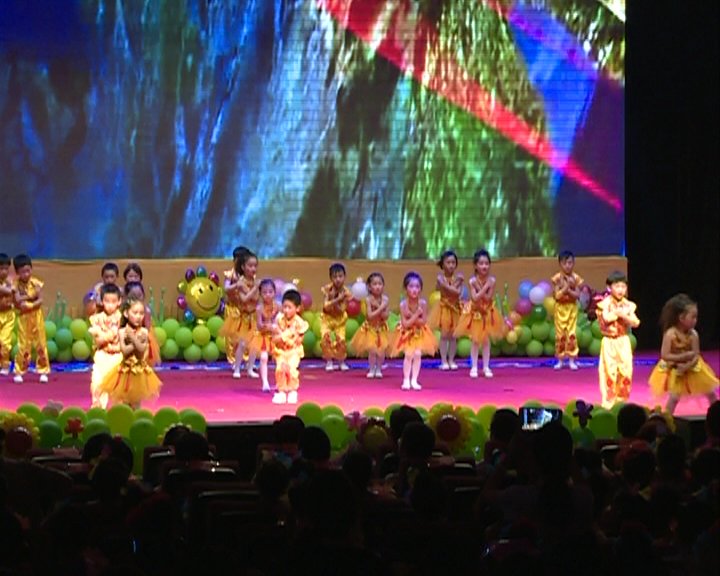 文艺汇演在开场舞蹈《七彩梦想》中拉开序幕,接着舞蹈《小脚丫》、《我有一双小小手》、《踏浪》,武术操《千字文》、情景剧《守株待兔》等节目逐一上演、精彩纷呈。最后在全体幼儿大合唱《红太阳照山河》中圆满落幕。孩子们用童心演绎快乐,用多种形式的节目传递心中的喜悦,他们的童真、稚趣、认真的表演博得家长们的阵阵掌声。