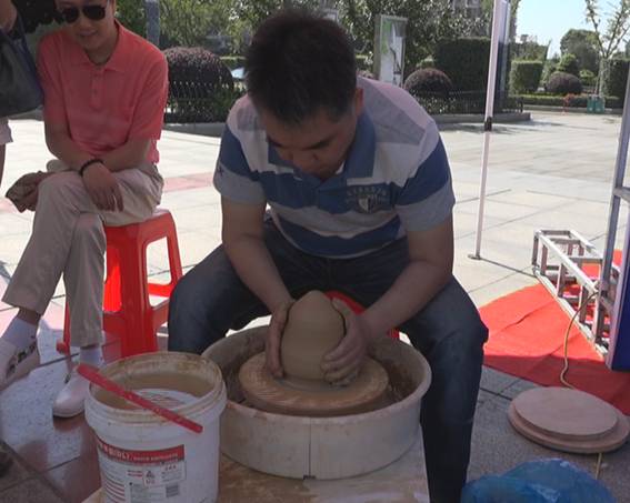岳州窑第42代传人吴军平现场展示了拉坯技艺