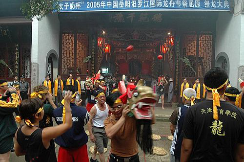 汨罗市位于美丽的洞庭湖畔,因境内的汨罗江而得名。是中国端午文化的源头、中国龙舟名城,有“蓝墨水的上游,文化人的圣地”的美誉。二千四百年前的农历五月初五日爱国主义诗人屈原在此投江殉国,当地群众即在屈原居住过的江边——南阳里立祠纪念屈原,并举行龙舟竞渡,同时举行隆重的祭祀典礼,缅怀先贤,这是最早的民间祭祀活动,当地人称之为“朝庙”。